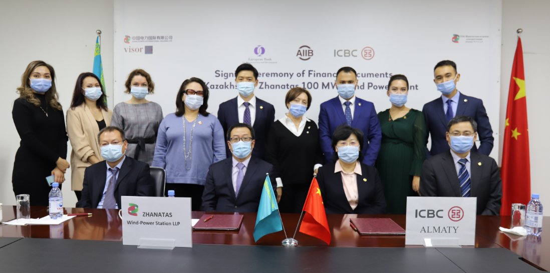 工银阿拉木图积极履行社会责任,践行“绿色金融”发展理念,全力支持中亚地区产能合作建设和绿色能源发展。2020年,工银阿拉木图携手亚投行、欧开行等多边金融机构,为中资企业在哈投资建设的札纳塔斯100MW风电项目提供1亿美元融资,为这一中亚地区最大风电项目顺利竣工奠定了坚实基础,也为构建银企合作模式、推进绿色“一带一路”建设发挥了积极示范作用。